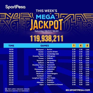 • Home of Sportpesa Mega & Midweek Jackpots