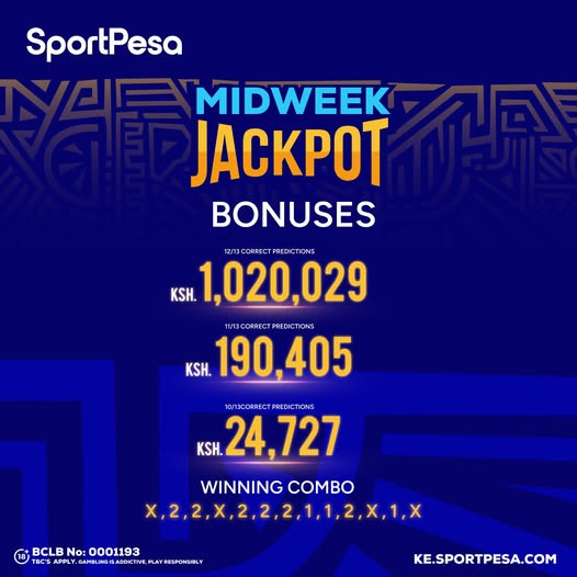 Sportpesa Midweek Jackpot result and bonuses for 13/03/2026 tayari — Ksh 1,020,029 bonus WON