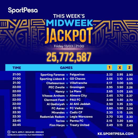 Sportpesa Midweek JP predictions: Playing on Friday, 13/02/2026: Win Kes.25.7 M