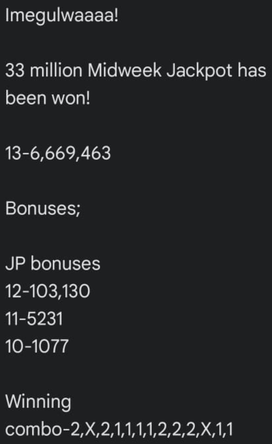 Yes!!We said it! It was to be Won! Kes. 33.3 M midweek JP was WON!