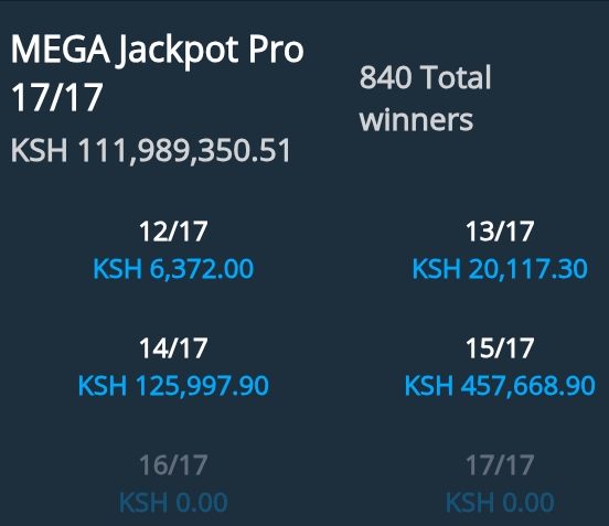 Sportpesa Mega Jackpot result and bonuses for Mega JP 21/12/2025— kes. 457,668 was won!