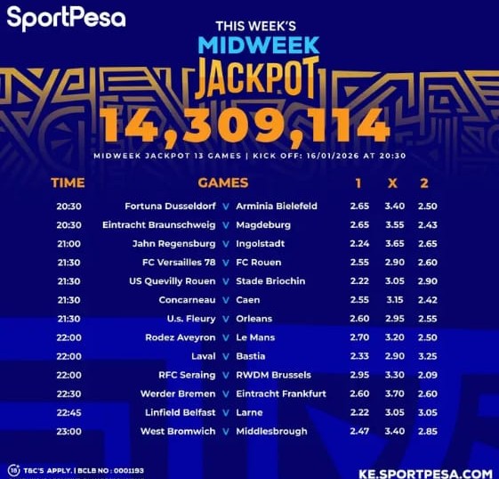 Sportpesa Midweek JP predictions: Playing on Friday, 16/01/2026: