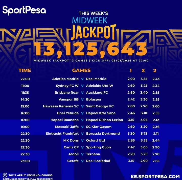 Sportpesa Midweek JP predictions: Playing on Thursday, 08/01/2026: